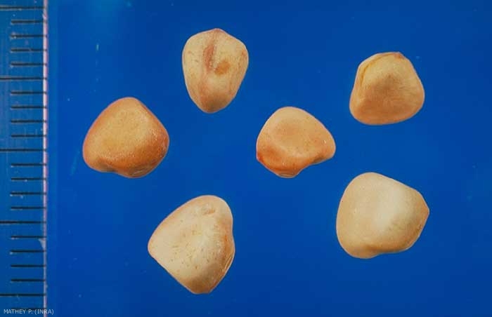 Cotylédons non visibles (germination hypogée) ;
