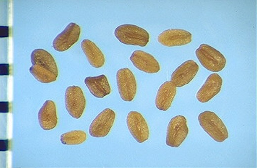Forme : ellipsoïde, aplanie en bouclier avec marge enroulée vers la face inférieure en creux, à hile proéminent. Face supérieur munie d'une crête ;