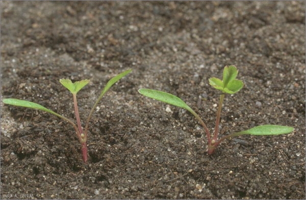 Les premières feuilles sont arrondies, profondément échancrées (figure 1) ; les suivantes pennées.