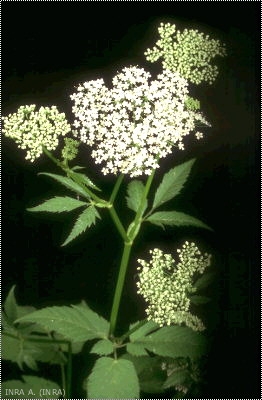 L'inflorescence : les fleurs sont petites (environ 3 mm), blanches, disposées en de larges ombelles multiflores terminales (figure 3)
