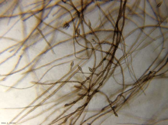 Les conidies, émises à l'extrémité des conidiophores, sont de la même couleur et mesurent 12-35 x 4-10 µm. De forme fusoïde, elles peuvent être cloisonnées ou non (figure 2).