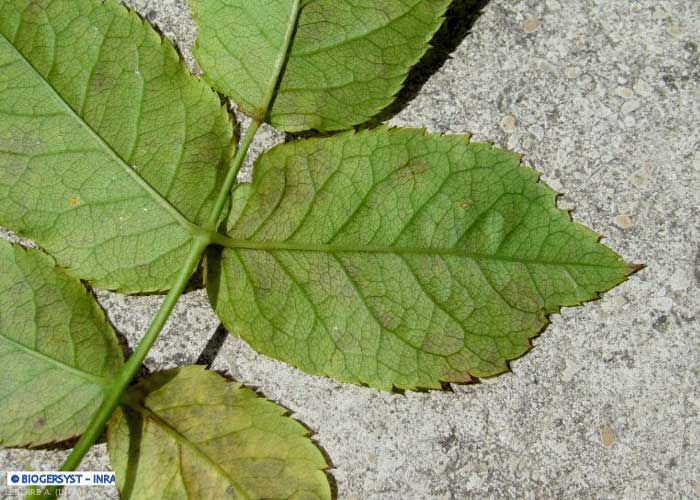 A la suite des premières contaminations printanières, les reproduction et dissémination de Peronospora sparsa sont assurées par la production de sporangiophores, et donc des sporanges, pendant une grande partie de la période de végétation. Le sporange germera en produisant un tube germinatif qui permettra l'infection de nouveaux tissus.