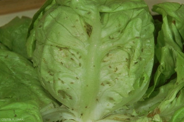 Ce sont des suceurs de sève. En général, les dégâts directs de spoliation sont très peu importants sur la laitue. Ce sont les souillures qui sont graves car une salade pleine de pucerons est invendable (figure 1). De plus, les feuilles sont à peine colorées et légèrement déformées (bords ondulés). Si les feuilles subissent des altérations de couleur, c'est que d'autres espèces de pucerons interviennent aussi.