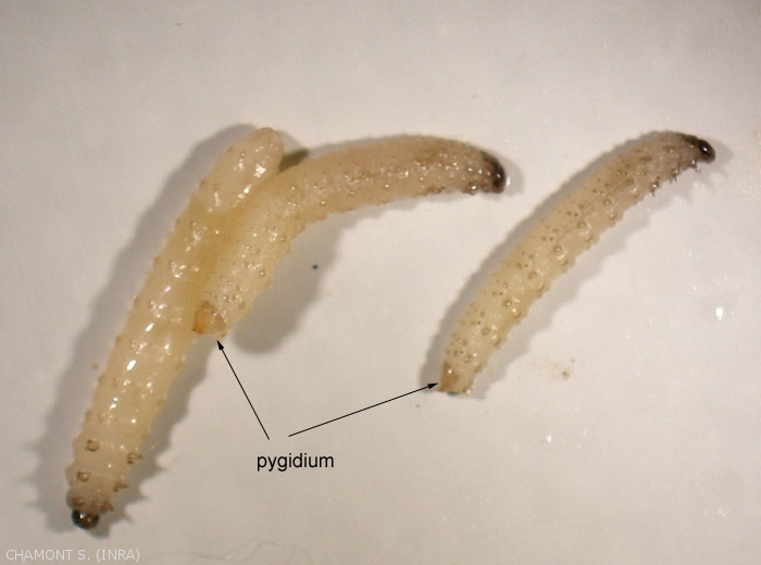 - pygidium (figure 9) : extrémité postérieure de l'abdomen (par exemple d'une larve). Chez les cochenilles Diaspididae, les ornementations du pygidium permettent la détermination de l’espèce.