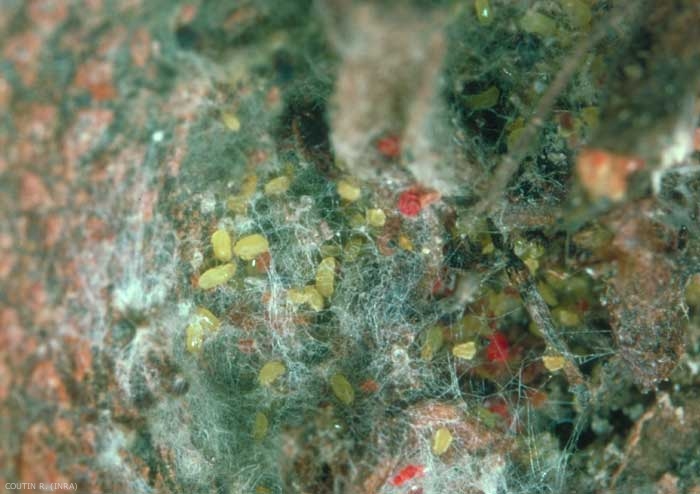 Lors du cycle complet, de l'oeuf d'hiver naît une virginipare, qui est à l'origine de plusieurs générations de femelles identiques. En août, les femelles s'abritent dans la cavité pistillaire, futur oeil des poires, surtout chez les variétés où cette cavité ne se ferme pas complètement.