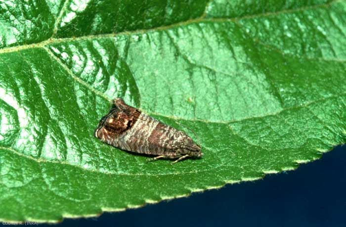 Sur fruits à pépins, autour du trou d'entrée de la jeune larve, la zone rongée, suivie d'une galerie en spirale, est prolongée par une galerie aboutissant directement aux pépins dévorés par la larve (figure 3). Sur noix, la larve chemine à travers le brou et pénètre jusqu'à l'amande ; lorsque celle-ci durcit, la larve sort par le hile ou reste dans le brou.