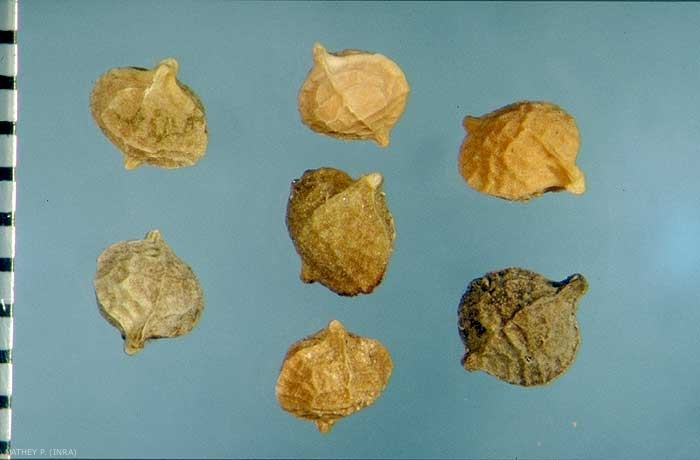 Forme : ovoïde à globuleuse, à section lenticulaire large ;