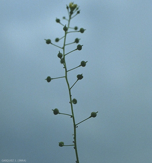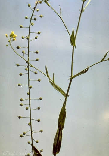 Fruits : silicules subglobuleuses, beaucoup plus courtes que les pédoncules qui les portent et très étalées en dehors.