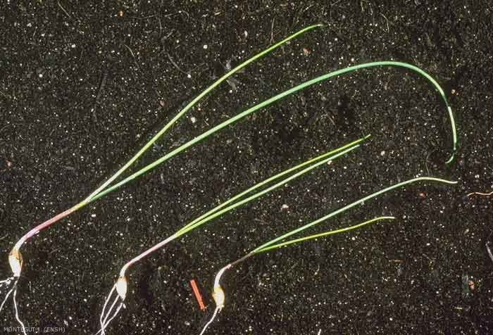 Germination des bulbilles : les feuilles sont engainantes, cylindriques, linéaires, à odeur d'ail prononcée (figure 1).