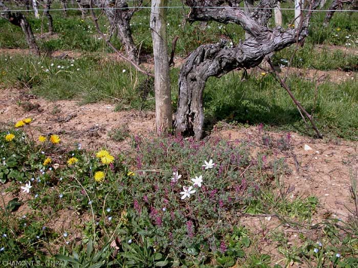 C'est une adventice que l'on peut trouver en Espagne et Italie. En France, elle est présente en vergers et au vignoble (figure) ainsi que dans les céréales.