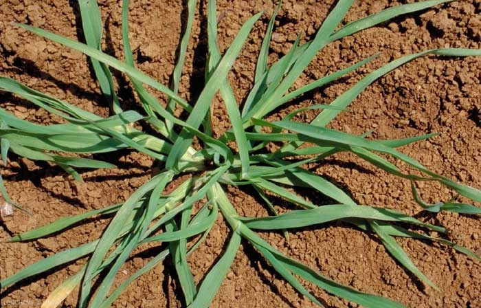 Ligule membraneuse dentée, limbe non auriculé à la base.