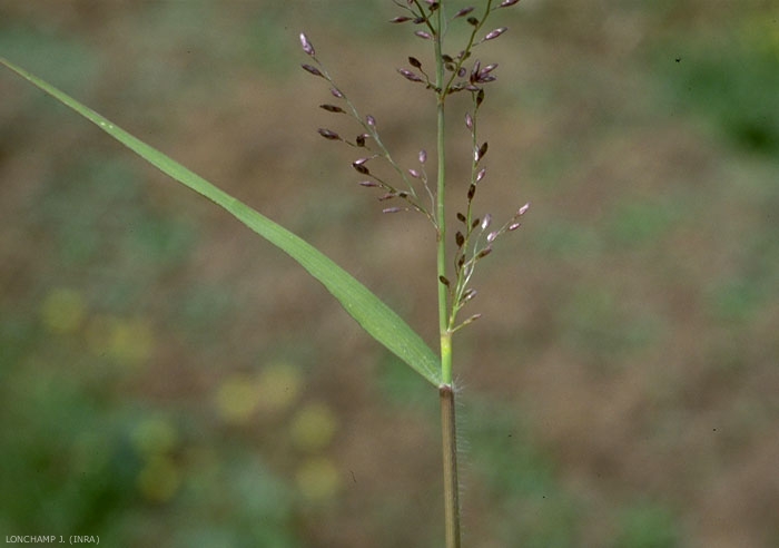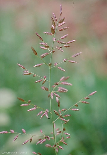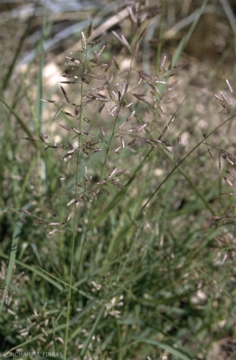 Inflorescence très étalée mais peu ramifiée. Panicules lâches à rameaux grêles longuement nus. Épillets de moins de 2,5 mm de large vers la base. Présence de glandes sur le pédicelle et la carène des glumes et lemmes