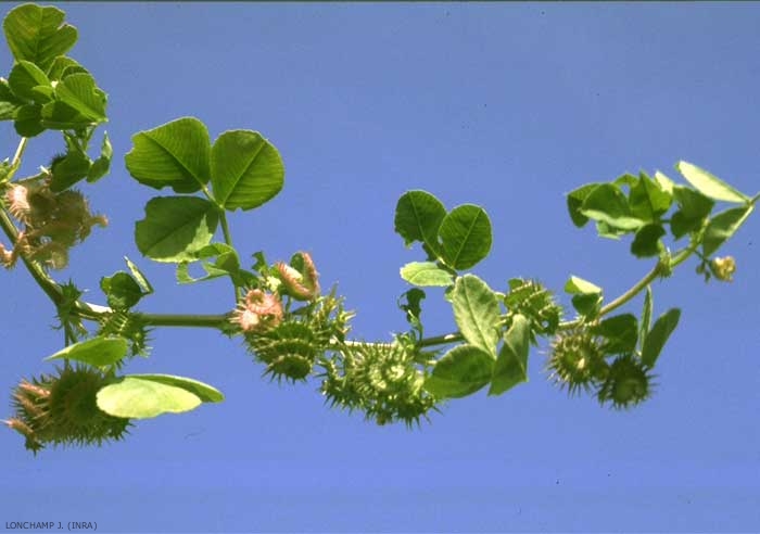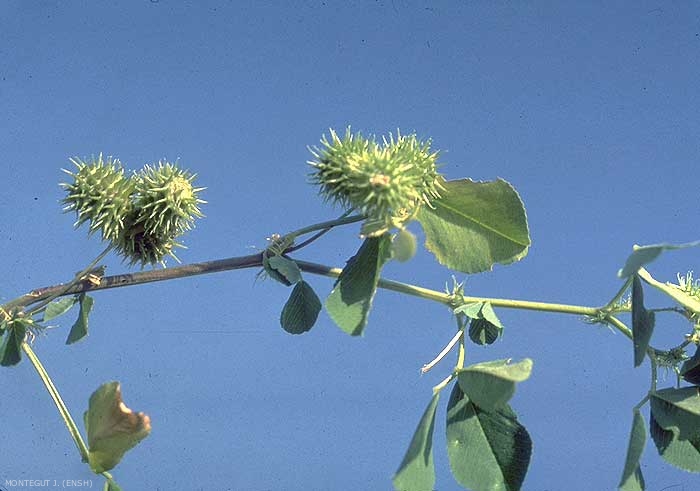 - syn. scientifique : Medicago denticulata, Medicago hispida, Medicago nigra, Medicago polymorpha var. vulgaris, M. polycarpa