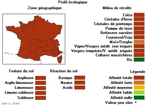 Plante cosmopolite, on trouve cette adventice dans tous les pays d'Europe. En France, on la rencontre sur tous les types de sols et dans toutes les cultures sauf le riz.
