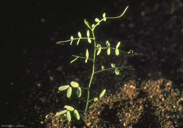 Cotylédons non visibles (germination hypogée) ;