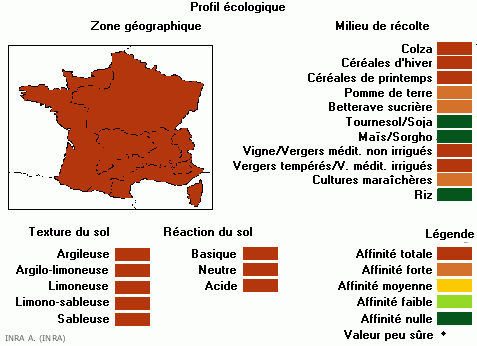 Plante très commune on la trouve dans tous les pays d'Europe. En France, on trouve cette espèce sur tout le territoire et tous les types de sols. Cette espèce occupe plutôt les vergers et vignobles, les cultures maraîchères et les céréales.
