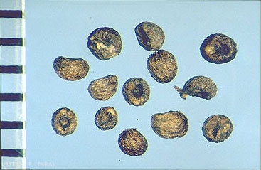 Fruits sur les pédoncules dressés. Fruits assez gros, glabres, en 2 parties, chagrinés.