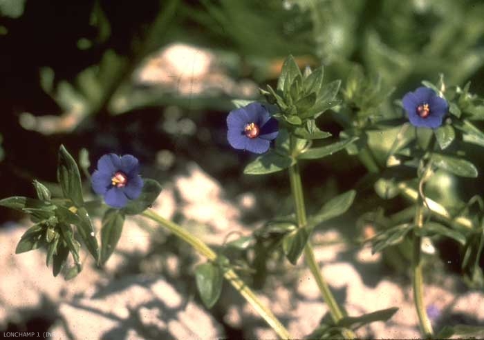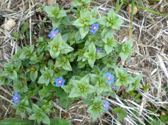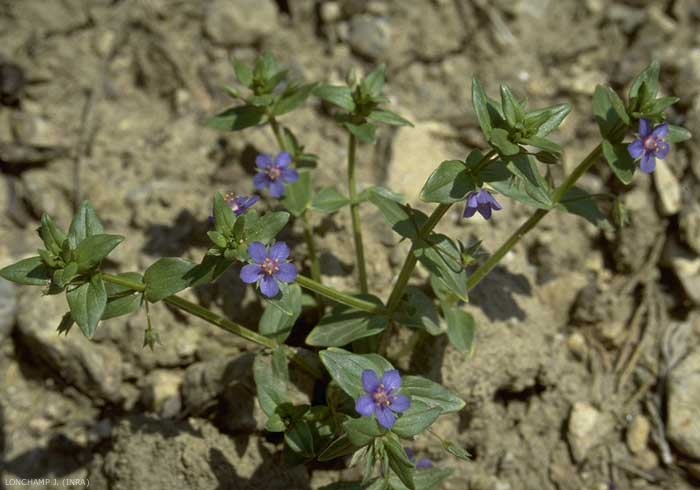 - syn. scientifique : Anagallis foemina, A. arvensis var. caerulea, A. caerulea