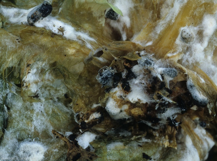 Peu de maladies affectent cette culture. Celles rencontrées en France sont dues à des champignons comme Thanatephorus cucumeris (anc. Rhizoctonia solani, induisant des nécroses brunes au collet), ou, moins fréquemment grâce aux semences certifiées, Diaporthe phaseolorum var. sojae (Ascomycota Sordariomycetes) reconnaissable aux pycnides noires produites sur la tige au centre de taches décolorées. La sclérotiniose (Sclerotinia sclerotorium, figure 1) peut-être observée dans les régions qui cultivent d'autres protéagineux. Le mildiou (Peronospora manshurica) ne cause pas de dégâts majeurs.