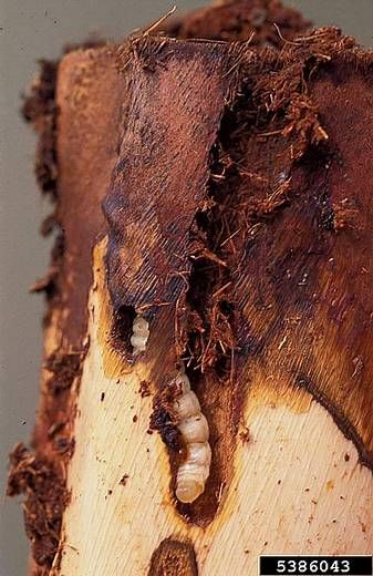 C’est la chenille du papillon qui est à l’origine des dégâts dont les premiers symptômes apparaissent seulement plusieurs mois après sa pénétration.