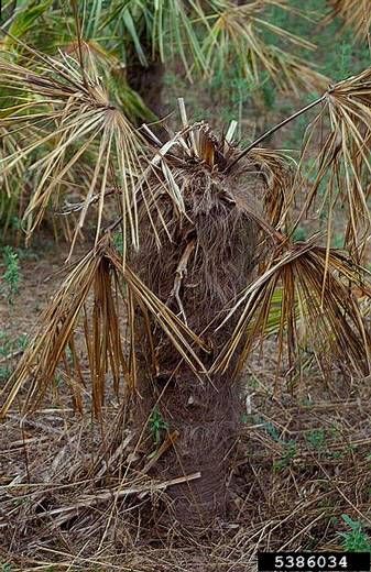 Les galeries creusées par les chenilles peuvent causer la mort du palmier hôte