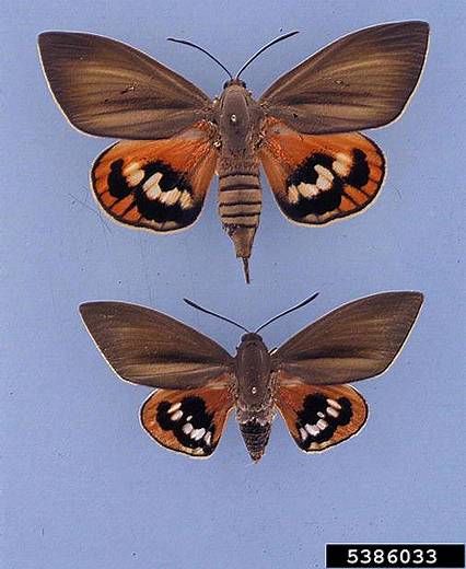 Le papillon a une envergure pouvant aller jusqu’à 11 cm. Il présente des ailes antérieures vert olive, et des ailes postérieures vivement colorées de taches blanches et noires sur fond rouge-orange (figure 3).
