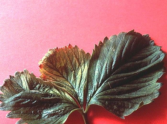 Les attaques sérieuses conduisent à des plantes naines, qui ne se développent plus. Les jeunes feuilles ne s’ouvrent pas complètement et les limbes et pétioles restent petits. Les feuilles ainsi déformées finissent par jaunir puis par devenir friables et sécher.