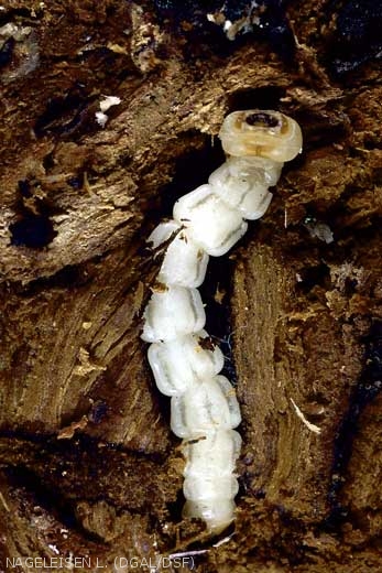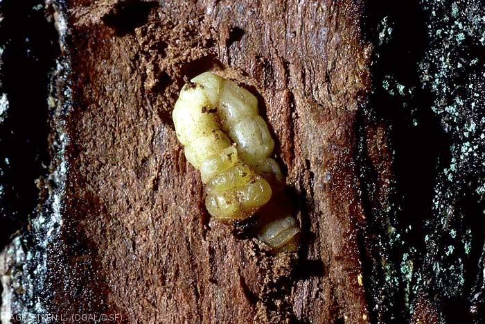 Après éclosion (10 à 15 jours après la ponte), les jeunes larves pénètrent dans l'épaisseur de l'écorce en creusant une galerie sinueuse très fine. Au fur et à mesure du développement, la galerie s'élargit. Elle devient alors typiquement zigzaguante. Elle se situe essentiellement dans l'épaisseur de l'écorce, mais fréquemment touche l'aubier et devient sous-corticale. La larve en fin de développement creuse une logette de nymphose dans l'épaisseur du rhytidome. La nymphose intervient selon les régions et les conditions climatiques au printemps de l’année suivant la ponte ou à partir de l’hiver suivant, soit près de 18 à 22 mois après la ponte.