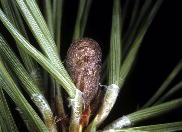 - Défoliation au printemps avec présence d'un fouet d'aiguilles de l'année à l'extrémité des rameaux (consommation uniquement de la pousse n - 1). En été, toutes les aiguilles sont consommées.