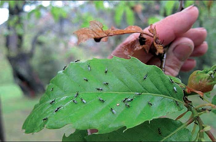 Prélever des échantillons de rameaux porteurs de galles et de jeunes pousses saines se trouvant à proximité des galles, sur le même sujet ou sur un autre arbre.
