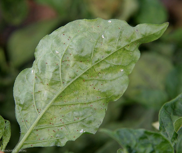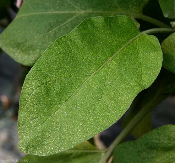 - face supérieure des feuilles : ponctuations jaunes (figures 3, 4, 5 et 6).