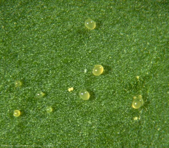 Les oeufs sont déposés sur la face inférieure des feuilles (figure 2).