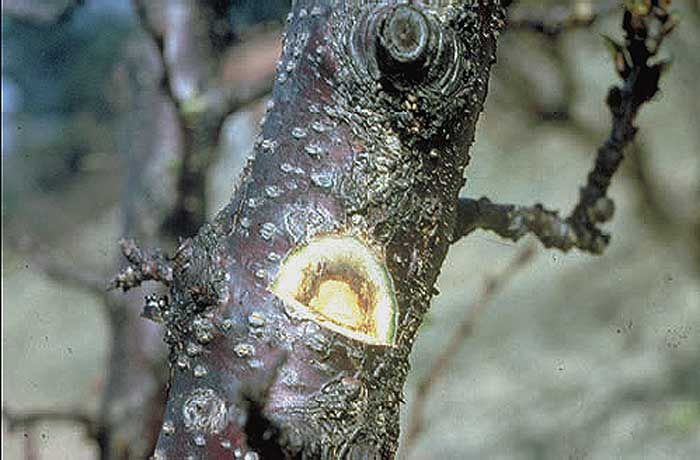 Un arbre peut dépérir 12 à 24 mois après l’apparition des premiers symptômes, voire quelques semaines après seulement. La gravité de la maladie est dépendante de l’âge de l’arbre, de l’espèce, de la variété ou encore de l’intensité du froid. Par exemple, les pruniers japonais survivent plus longtemps face à l’ECA que les abricotiers.