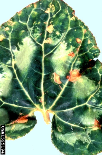 - Les feuilles peuvent présenter des taches décolorées, nécrotiques, en forme d’halos, d’anneaux circulaires ou des mosaïques. Parfois, un éclaircissement des nervures peut être observé.