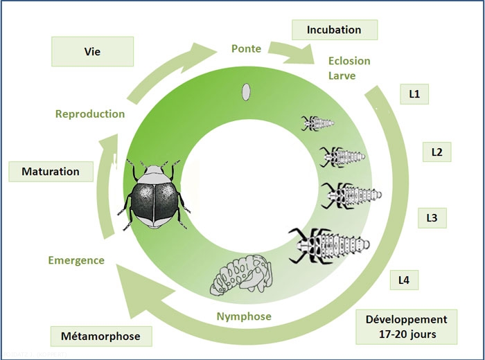 Ci-dessus le cycle de développement de Stethorus punctillum.