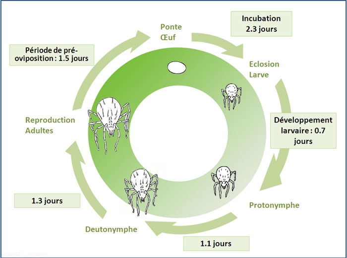 Ci-dessus le cycle de développement de Phytoseiulus persimilis à 25°C.