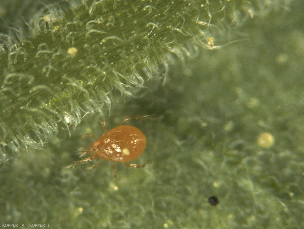 L'adulte se développe après le 2d stade nymphal : il est rouge clair avec de longues pattes et est très actif à des températures élevées. Les femelles mesurent environ 0.6mm de long. On les différentie difficilement des mâles, légèrement plus petits, plus plats et plus allongés.