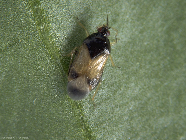 Les larves des différentes espèces d’Orius (figure 3) se distinguent les unes des autres seulement aux derniers stades larvaires. Celles d’Orius laevigatus restent jaunes jusqu’au dernier stade, avec des taches marron orangé qui apparaissent. Les yeux sont rouges.
