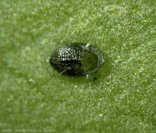 L’aleurode des serres pond généralement ses œufs sur les feuilles les plus jeunes. On n’observe alors pratiquement que des larves de même stade de développement. Les populations d’E. formosa sont par conséquent aussi homogènes. Les larves d’aleurodes non parasitées deviennent adultes environ sept jours plus tôt que le parasitoïde.