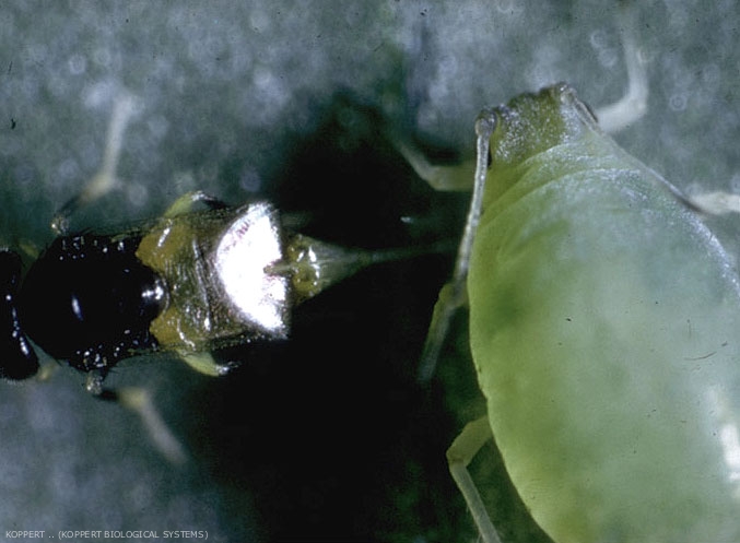 | Efficacité | 250 parasitismes , suivant les hôtes disponibles durant 3 semaines, et environ 2 pucerons consommés par jour par "host feeding". |