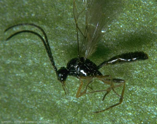 À l’émergence, la femelle possède déjà dans son abdomen environ 100 œufs fécondés et peut commencer immédiatement à parasiter les pucerons, en pondant le plus d’œufs durant les trois premiers jours qui suivent son émergence.