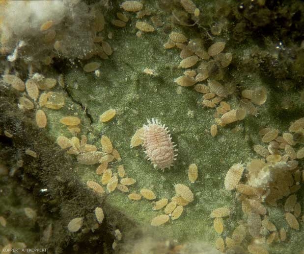 Températures élevées, 25 à 60%HR. Au-dessous de 13 °C, les cochenilles cessent de pondre, et à 8°C leur développement cesse. |