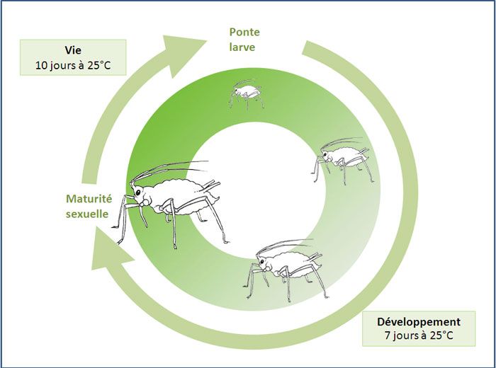 Cycle de développement parthénogénétique de Myzus persicae persicae.