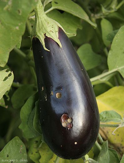 Par exemples les larves de premier stade d'Helicoverpa armigera se nourrissent des feuilles tendres, créant ainsi de petites perforations. Lorsqu’elles atteignent le deuxième stade, elles sont capables de pénétrer dans les fruits par un petit trou, souvent près du pédoncule. Elles les endommagent à tous les stades de leur développement en y creusant des galeries, avec cependant une préférence pour les plus jeunes. Les fruits cessent alors de grossir, mûrissent prématurément et tombent. Les fleurs sont aussi attaquées et les enveloppes des graines sont perforées.