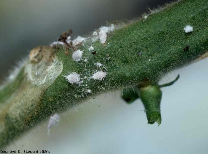 - Symptômes : nombreuses piqûres et succions alimentaires, déformations foliaires, taches chlorotiques, croissance réduite des plantes
