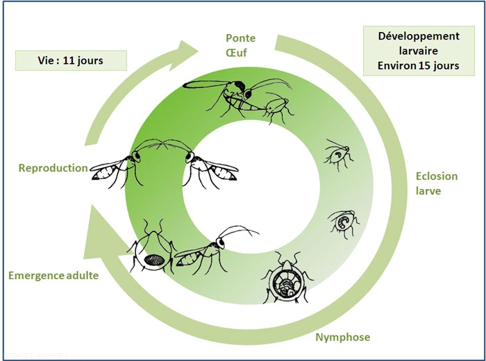 Ci-dessus le cycle de développement de Praon volucre.