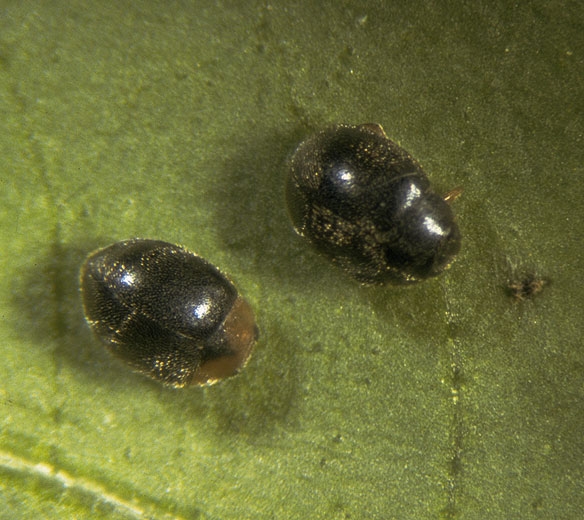 Adulte : coccinelle (figures 2, 3 et 4) , émerge de la nymphe, est de couleur marron foncé, et mesure 1.8 à 2.3mm.