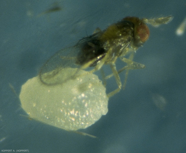 Bonne. Ces parasitoïdes détectent plus aisément les paquets d'oeufs. Ils examinent la plante de bas en haut et restreignent leur périmètre de recherche chaque fois qu'ils trouvent un oeuf convenable. |