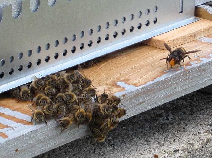 En Europe, l’espèce d’abeille domestique européenne (A. mellifera) est également capable de produire ce type de comportement de défense, mais globalement de façon moins efficace, entraînant de ce fait une importante prédation sur le cheptel apicole français déjà menacé par ailleurs.