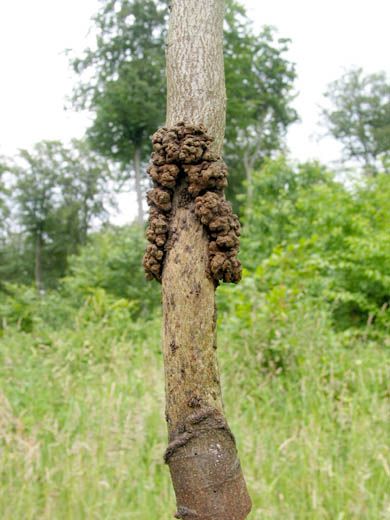 Les tiges sont écorcées en hauteur, causant des lésions graves sur plusieurs mètres de haut parfois et sur des tiges allant jusqu'à 30 cm de diamètre.